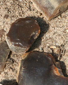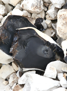 Charakterystyka petrograficzno-mineralogicznaPierwsi badacze krzemienia czekoladowego (Krukowski, 1920; Samsonowicz, 1923) stwierdzili, że przybierają one różną formę. Występują w postaci płaskur (niesłusznie nazywane warstwami) o grubości do kilku, niekiedy kilkunastu centymetrów i długości do kilku metrów. Towarzyszą im zazwyczaj niewielkie buły o formach plackowatych lub stożkowatych. Dość często spotyka się poziomy składające się z gęsto upakowanych niewielkich buł o bardziej nieregularnych „kończystych” kształtach, przypominające poziomy turońskich krzemieni z Janikowa koło Ożarowa (Michniak, 1980). W rozkładzie przestrzennym różnych odmian nie można doszukać się żadnej prawidłowości. W większości przypadków różnice w formie skupień wynikają zapewne z różnej ich genezy. Można więc sądzić, że skały określane przez archeologów mianem „krzemieni czekoladowych” powstawały w wyniku różnych procesów zachodzących w basenie morskim o zróżnicowanych warunkach sedymentacji. Krzemienie czekoladowe mają korę, której grubość rośnie (w różnym stopniu) wzdłuż wychodni w kierunku południowowschodnim. Barwa krzemieni zmienia się niezależnie od formy buł. Wydaje się, że wiąże się ona ze stopniem odsłonięcia osadów zawierających krzemienie. W głębszych partiach profilu, np. w kamieniołomie cementowni „Przyjaźń” w Wierzbicy, krzemienie czekoladowe są prawie czarne (fot. 17). Z kolei krzemienie występujące na powierzchni lub w partiach przypowierzchniowych mają barwę jaśniejszą. W osadach redeponowanych (polodowcowych) okolic Tomaszowa i Orońska są jaśniejsze – ciemnożółtobrązowe. Jeżeli w przyszłości potwierdzą to badania fizykochemiczne, to barwa krzemieni może być cechą wtórną, zależną od procesów wietrzenia osadów jurajskich w paleogenie, neogenie lub plejstocenie (Budziszewski, 2008). Krzemienie czekoladowe charakteryzują się niską mikrotwardością, wyraźnie niższą niż krzemieni jurajskich podkrakowskich, a podobną do krzemieni kredowych (turońskich) z Kars i Janikowa, wyróżniając się jednocześnie dość dużą porowatością (Stawin, 1970). Wykazują natomiast dobrą łupliwość, zaledwie dwukrotnie niższą od obsydianów uznawanych za najlepsze w obróbce. Krzemienie czekoladowe przewyższają pod tym względem krzemienie pasiaste i świeciechowskie. Należy podkreślić, że pomimo tak niskich parametrów technicznych i małej przydatności do wyrobu narzędzi, odpornych na duże obciążenia, jak np. siekier, cioseł lub grac, „czekolada” cieszyła się niezwykłą popularnością w pradziejach. Dzięki dobrej łupliwości z krzemieni tych wytwarzano drobne narzędzia odłupkowe i wiórowe (Budziszewski, 2008).
